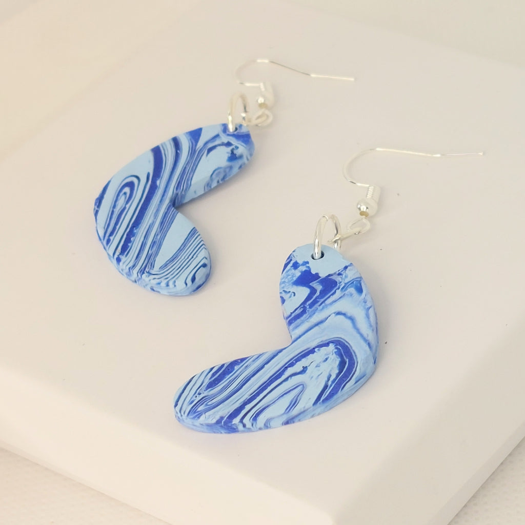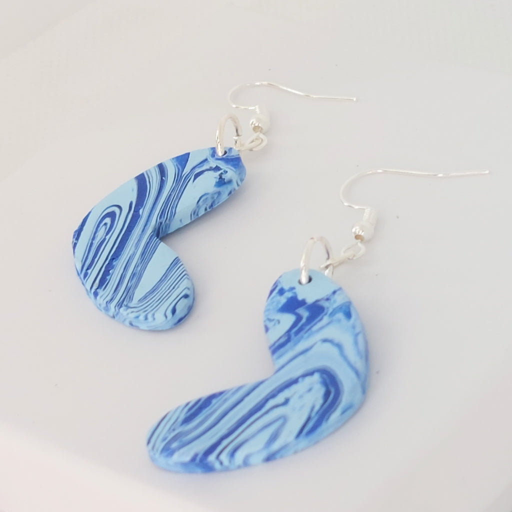 Handcrafted clay heart earrings featuring striking marble-effect patterns in rich, swirled tones. Each pair showcases unique veining and color variations, making them truly one-of-a-kind. Lightweight and comfortable for all-day wear, these artisan earrings add an elegant, contemporary touch to any outfit. Perfect for those who appreciate distinctive, handmade jewelry with natural aesthetic appeal.